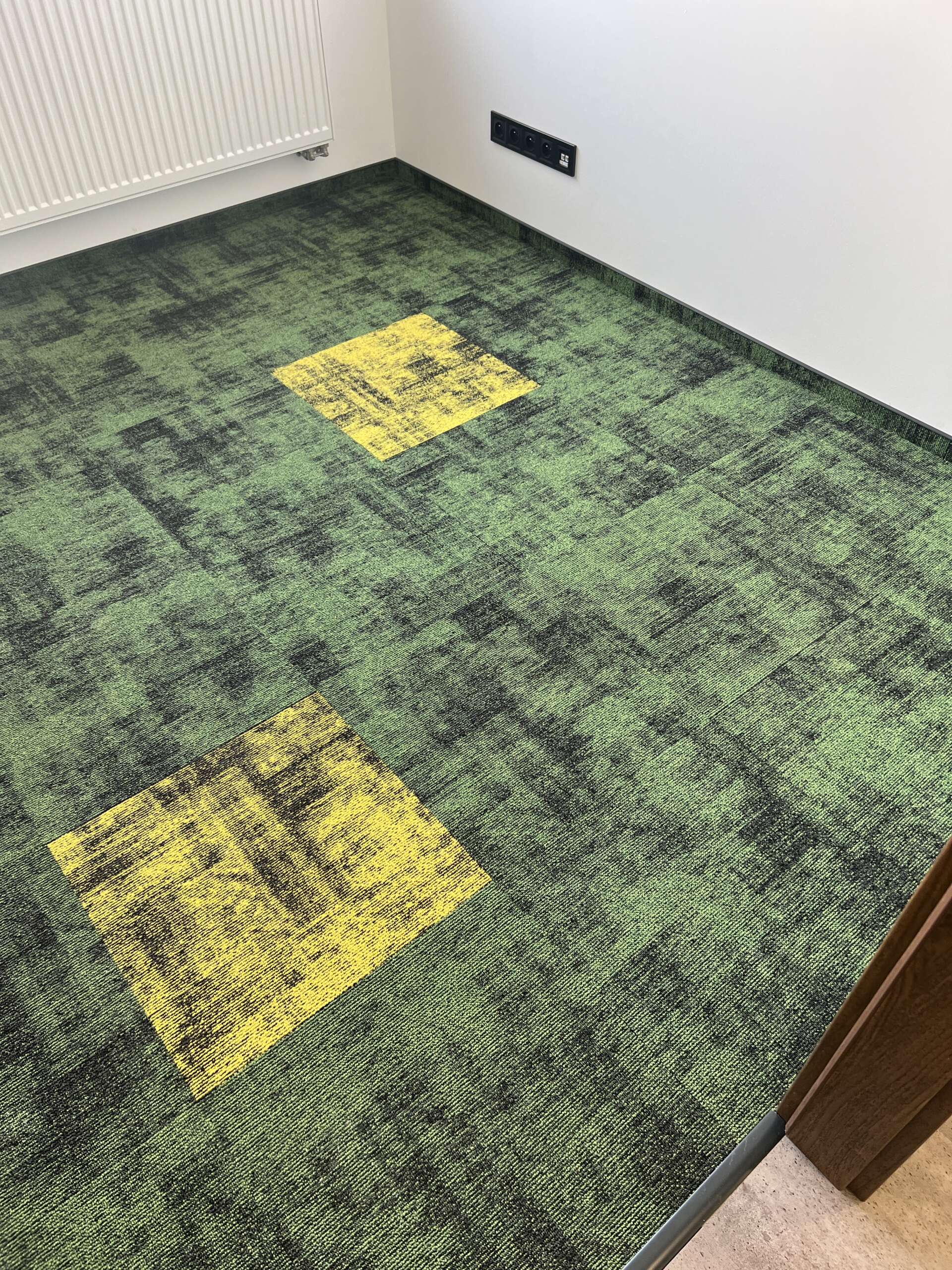 Dle zadání zákazníka jsme provedli pokládku v nové administrativní budově v Hostivicích u Prahy, Předmětem zakázky byla pokládka kobercových čtverců na fixační lepidlo, dále jsme obkládaly schody a provozní chodby vynilem.